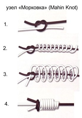 После того, как материал для шок-лидера выбран, самое время перейти к способам привязывания его к основной леске. Методик существует много, и каждый карполов выбирает ту, которая именно для него удобнее. Один из самых популярных и прочных узлов в среде карполовов называется «морковка».