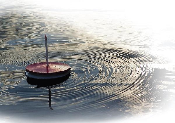 При поклевках кружочная снасть переворачивается вверх тормашками и начинает кружиться, а поскольку стержень двухцветный, то издалека это кружение воспринимается как мерцание.