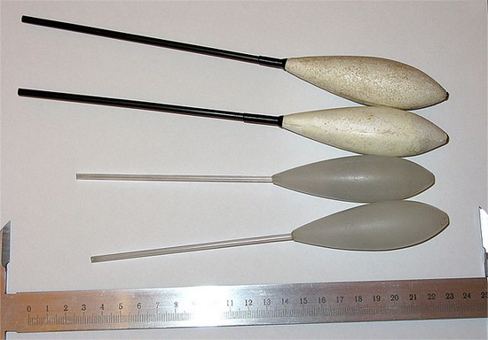 Если же вы хотите получить плавающие снасти для ловли карпа, то включите в конструкцию бомбарды какой-нибудь плавучий фрагмент – старый поплавок, к примеру. Вес огрузки в этом случае должен быть таким, чтобы оказавшаяся в воде бомбарда погружалась в воду на четвертую или третью часть своего объема.