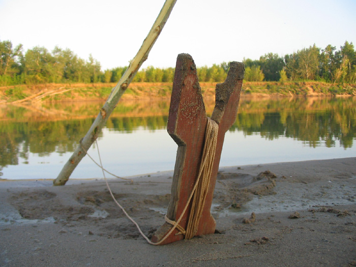 Следующий элемент снасти – хребтина. Она делается из проволоки или прочного шнура диаметром 4 мм и выше. В случае использования проволоки требуется промежуточная огрузка перемета. На малых реках хребтину ставят между берегами, привязывая к вбитым кольям, кустам или деревьям. На больших реках один из концов хребтины крепят к якорю. При установке перемета нужно позаботиться о том, чтобы хребтина имела значительный прогиб.