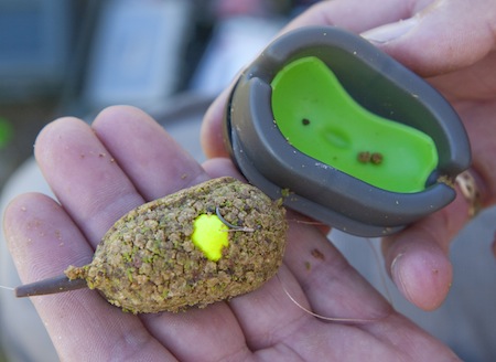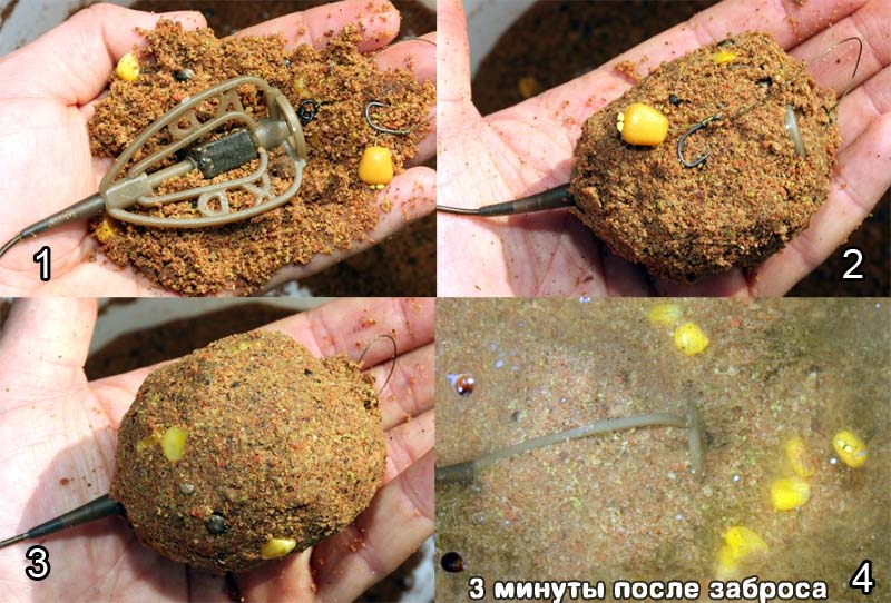 Подготовленным пеллетсом заполняют форму, приманку с крючком располагают между гранулами и вдавливают в форму кормушку – она должна войти плотно. Затем кормушку вынимают. Снасть готова – клейкий пеллетс плотно облепляет метод и хорошо на нем держится. Остальное – дело техники. Ход рыбалки будет зависеть от ваших умений забрасывать снасти на карпа и вываживать добычу.