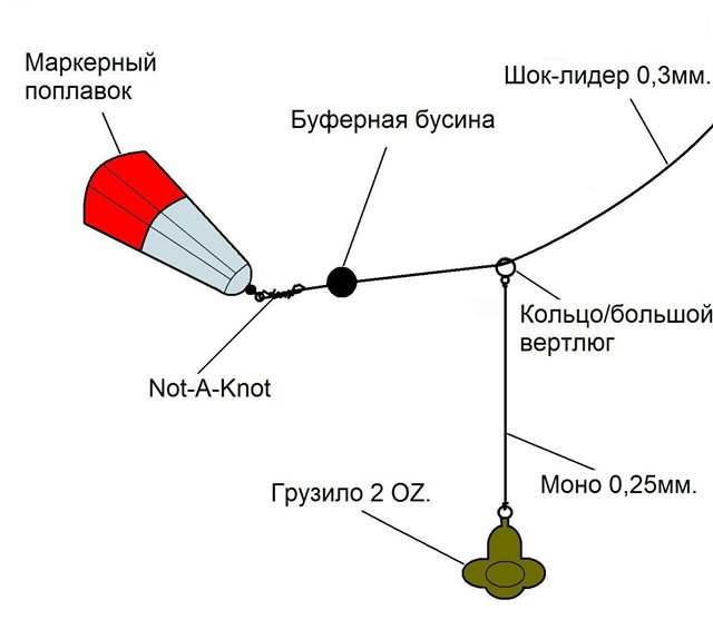 Кое-кто из карпятников при вязании такого узла (неважно каким способом) практикует проклейку, капая немного клея на узел. Но если научиться правильно вязать узел, используя при этом хорошую коническую монолеску, он никогда не развяжется.