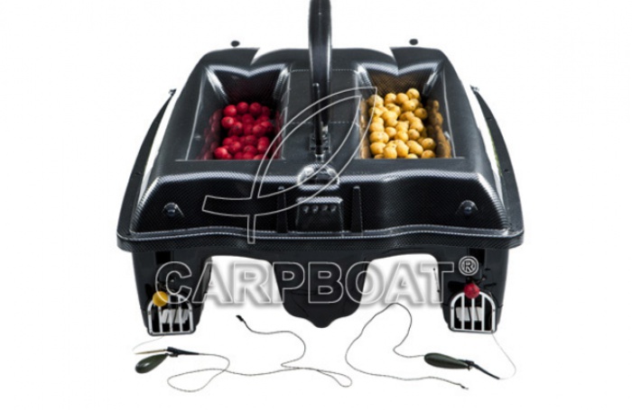 Емкость отсека прикормки для карпа составляет порядка 4-х килограммов и включает два бункера с запатентованной системой сброса. При этом предусмотрена возможность установки эхолота марок TF-520 или Эхолот TF640 с GPS. Таким образом, Carpboat Carbon – это органичное сочетание легкости эксплуатации, точности работы, удивительной маневренности и превосходных показателей срока службы.