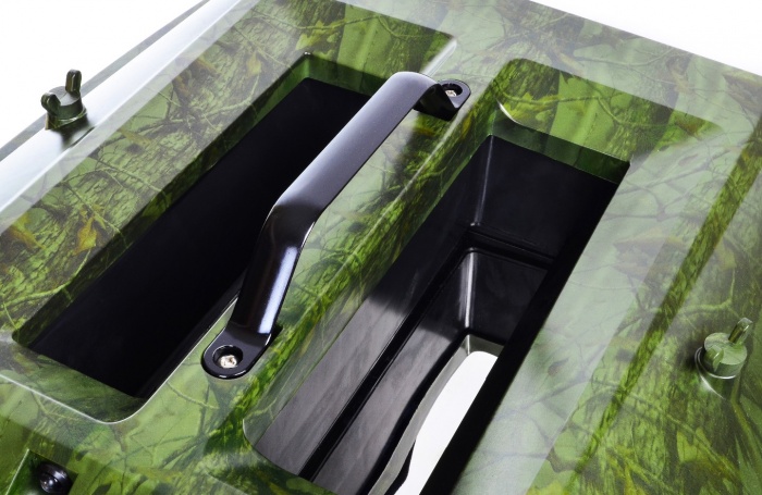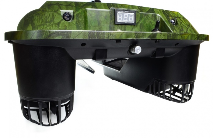 Оба бункера находятся посередине лодки и контролируются двумя независимыми сервоприводами с возможность открытия бункера при помощью пульта дистанционного управления. Важно отметить, что также имеется возможность закрыть бункеры после прикормки, что позволяет уменьшить сопротивление воды при возвращении прикормочного кораблика на "базу" и увеличить ресурс аккумуляторных батарей.